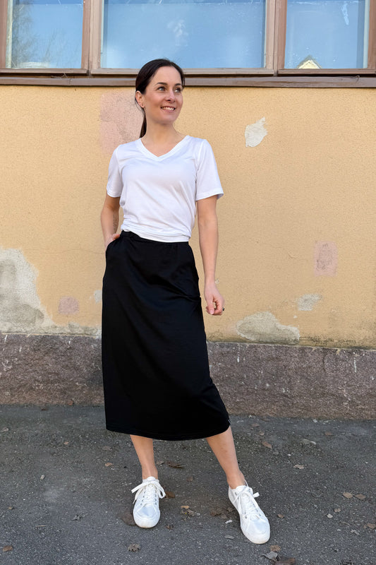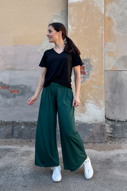Jos lahkeet ovat sinulle aina liian pitkät, suosittelemme tutustumaan nilkkapituisiin malleihin Bueno ja Aava 7/8, jotka sopivat hyvin myös täyspitkäksi vaihtoehdoksi ilman että mittasuhteet kärsivät. Kurkkaa myös culottespituiset Helmi ja Meno mallit.