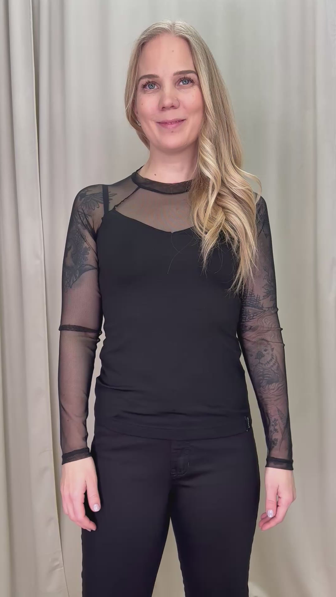 - Tyylikäs yhdistelmä läpinäkyvää meshiä ja pehmeää lyocelltrikoota
