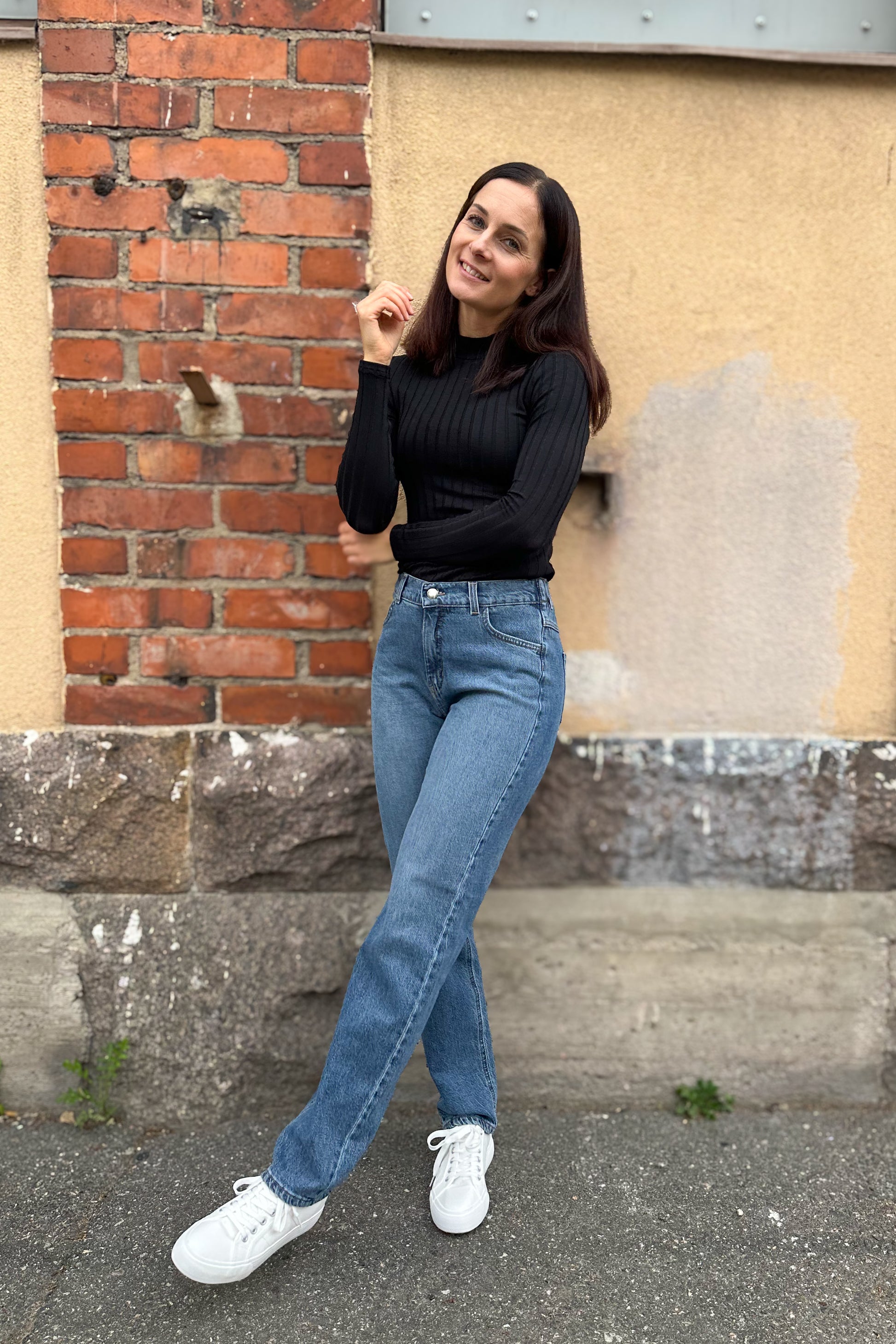 Kiva-ribbipaita pitkähihaisena mustassa värissä sopii monenlaiseen asuun. Leveä ribbineulos on ohuehkoa ja joustavaa, se on mukava päällä eikä hiosta. Kiva-paita on malliltaan istuva ja voit käyttää sitä sellaisenaan tai esim. kimonoiden ja mekkojen alla. Materiaalina lyocell-puuvilla-elastaani ribbineulos. Paitaa on saatavilla myös lyhythihaisena. Mittataulukot löydät tuotekuvista.