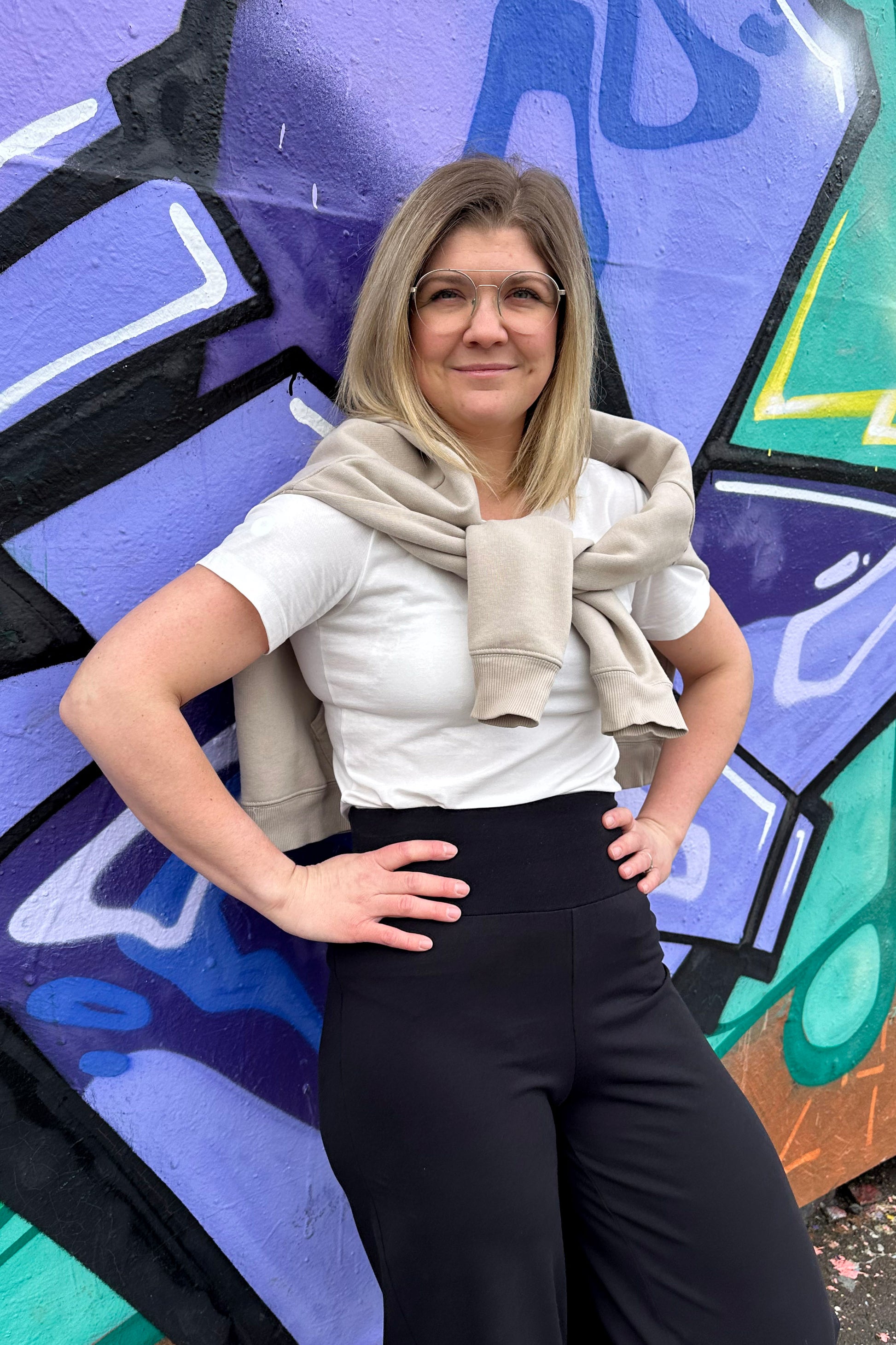 Rauha-trikoohousut ovat erittäin mukavat päällä ja sopivat monenlaiseen käyttöön. Rauha-housuissa on korkea, joustava ja pehmeä resorivyötärö, ja takana lisänä kuminauha, joten housut pysyvät mukavasti ylhäällä ilman, että vatsalle tulisi painetta. Lahjepituus on reiluhko ja kaikissa koissa samanpituinen. Rennot ja mukavat trikoohousut sopivat täydellisesti arkeen ja oleiluun. Malli on pienin muokkauksin täyspitkä versio suosituista Helmi-culotteshousuista. Mittataulukot löydät tuotekuvista.